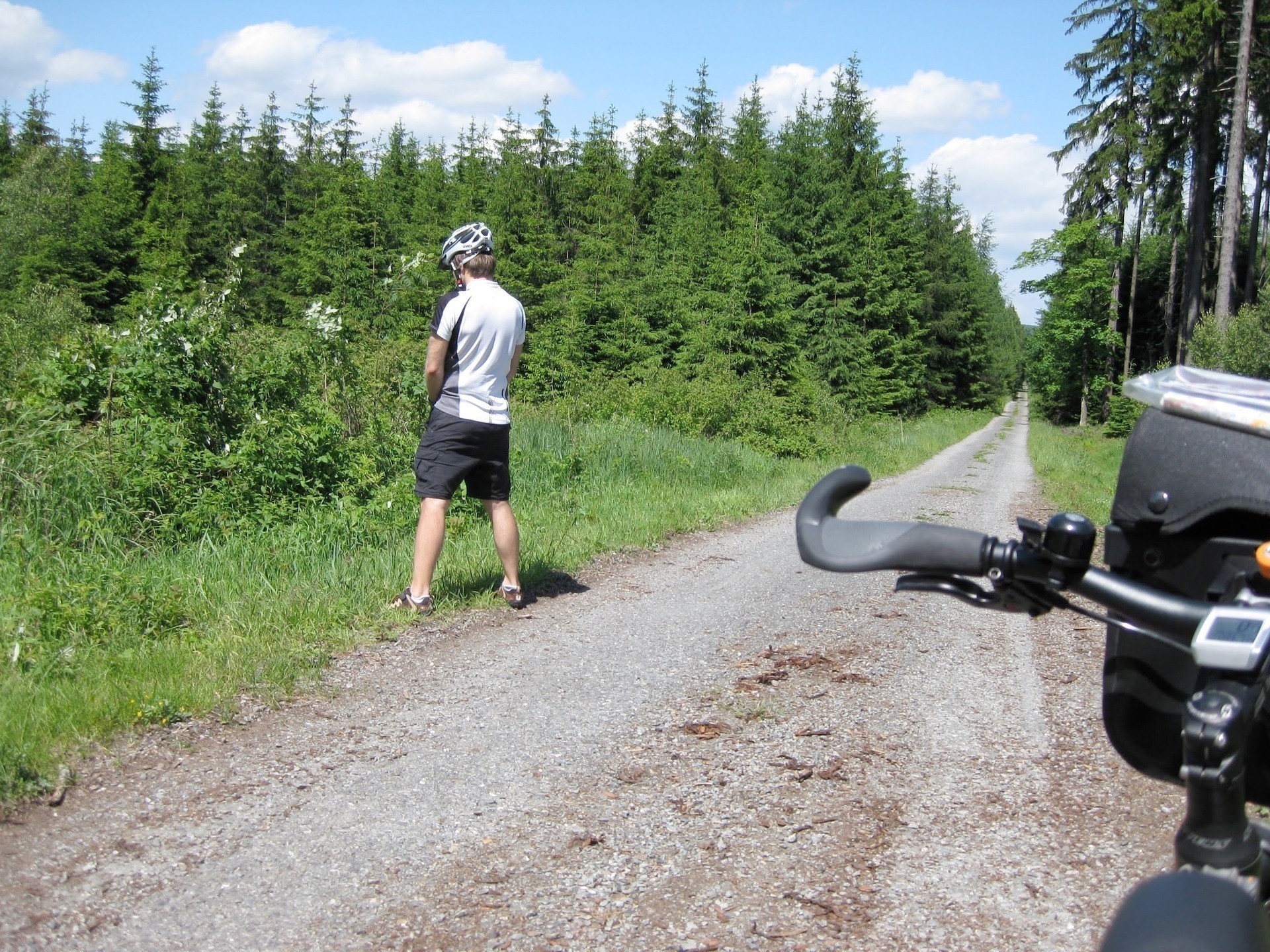 Es wird eine sehr abwechslungsreiche Fahrt durch Feldhügel mit extremen Fernblick - ich meine gar die Spitze vom Steffl erspäht zu haben ;) - über tiefe Wälder mit Flussüberquerungen und Schmodderwegen.