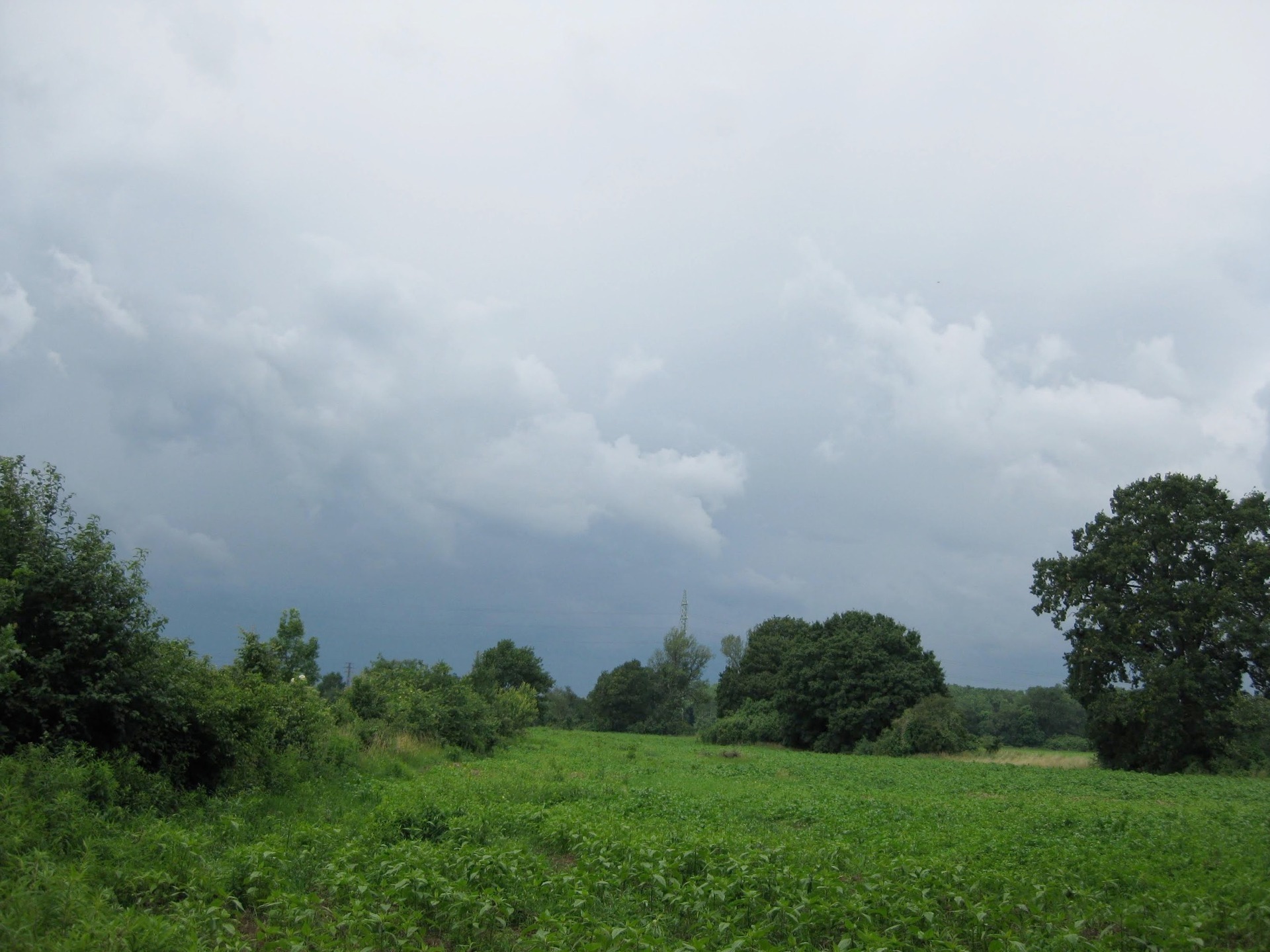 Nach wenigen Kilometern kommt dann auch der erwartete Wolkenbruch und es stürmt diesmal kräftig von der Seite. Fast hätte der Wind Rondolf und mich ins Feld abgedrängt. Schwerstarbeit für die Arme.