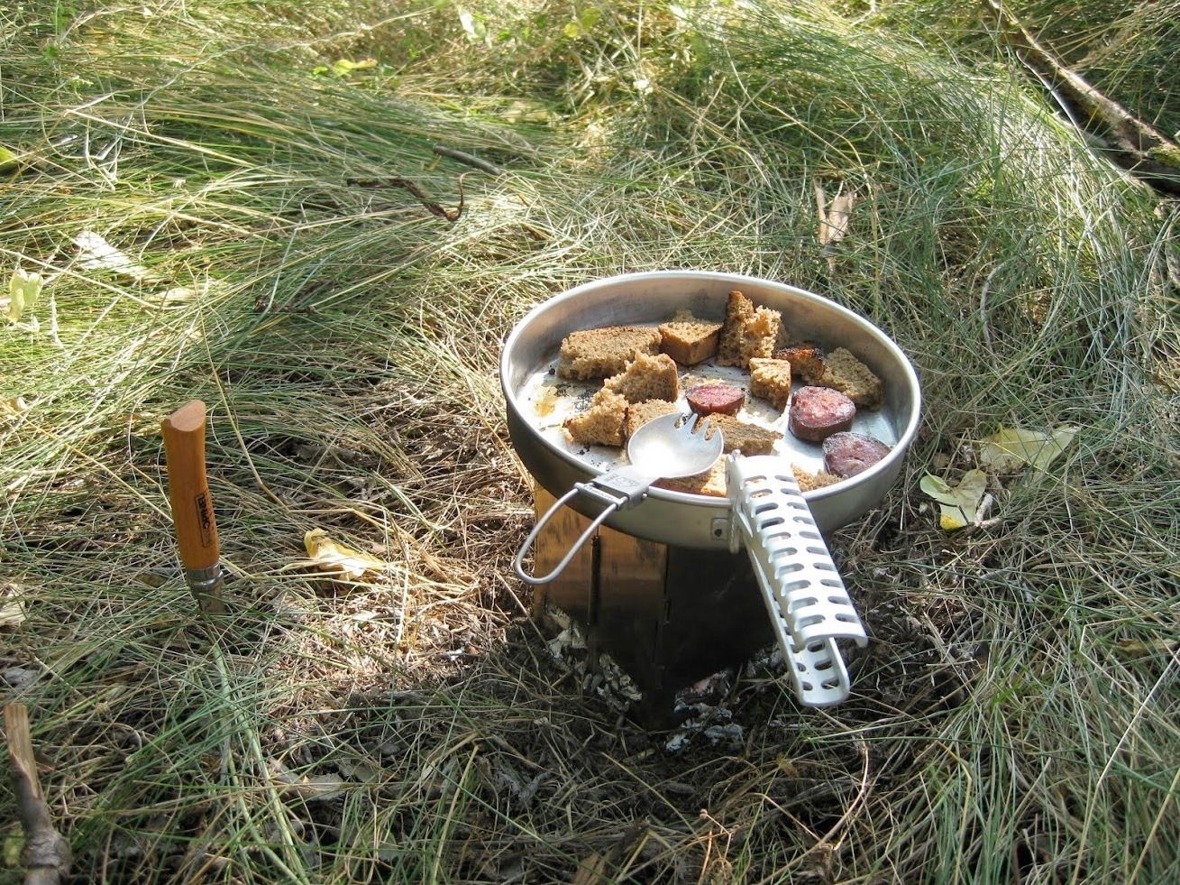 Zum Glück finde ich einen Fluss, der noch Wasser trägt und fülle dort mit Hilfe des Filters meinen Vorrat auf.